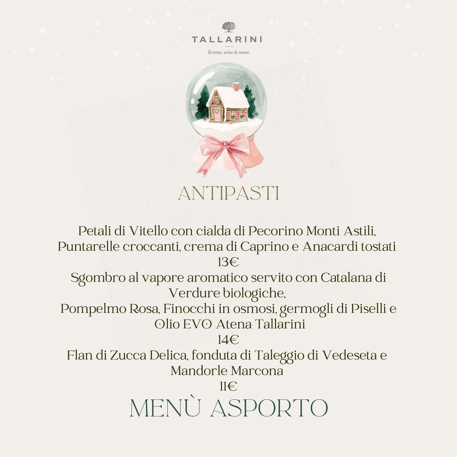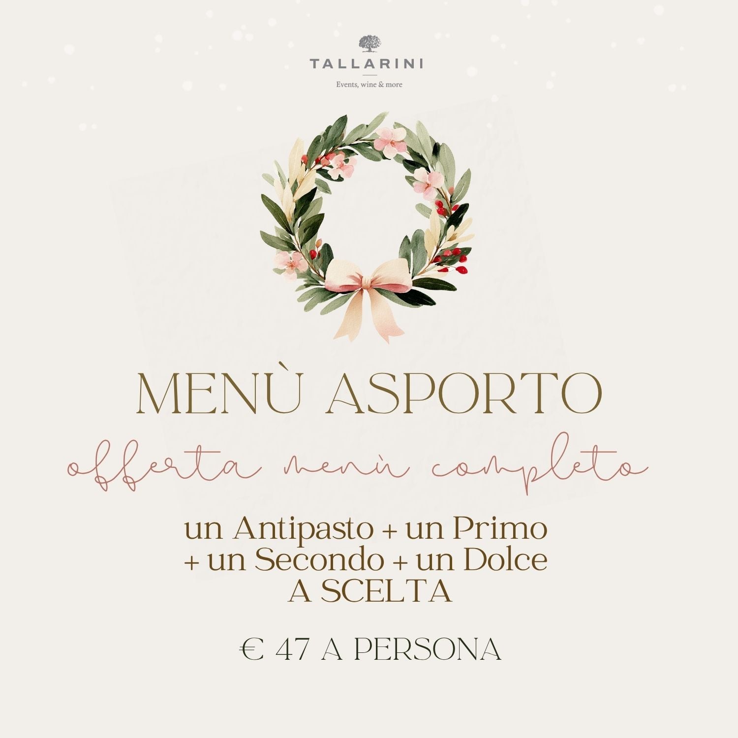 Take Away – L’Asporto d’Eccellenza!  Porta a casa tua il gusto e l’eleganza della cucina Tallarini. Scegli tra le nostre proposte natalizie d’asporto, componi il tuo menù o ordina le singole portate online.